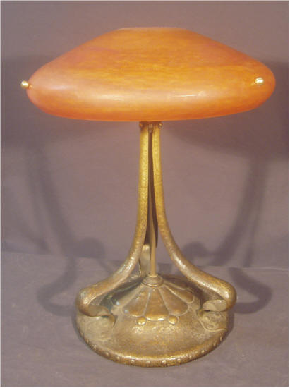 Tischlampe Messing Pulverglas bunt ~ 1915 H 50 cm Ø 36 cm |
