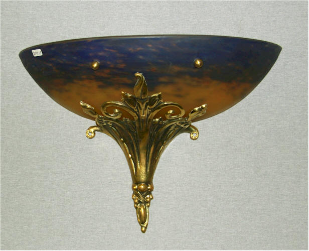 Wandapplique Messing Halbschale Pulverglas farbig ~ 1915 H 13 cm Breite 35 cm Tiefe 16 cm |