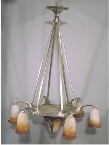 Monture en bronze niclé Verre a deux couches avec inclusions de poudre de verre. |