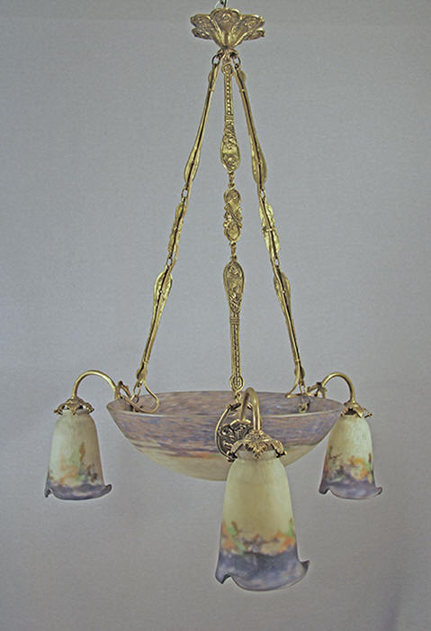 Monture en bronze doré Verre a deux couches avec inclusions de poudre de verre. |