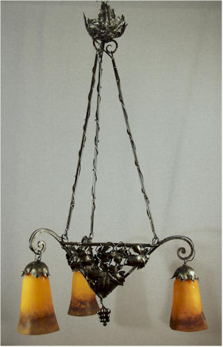 Schmiedeeisen 3Tulipen Pulverglas farbig ~ 1915 L 85 cm Ø 40 cm |